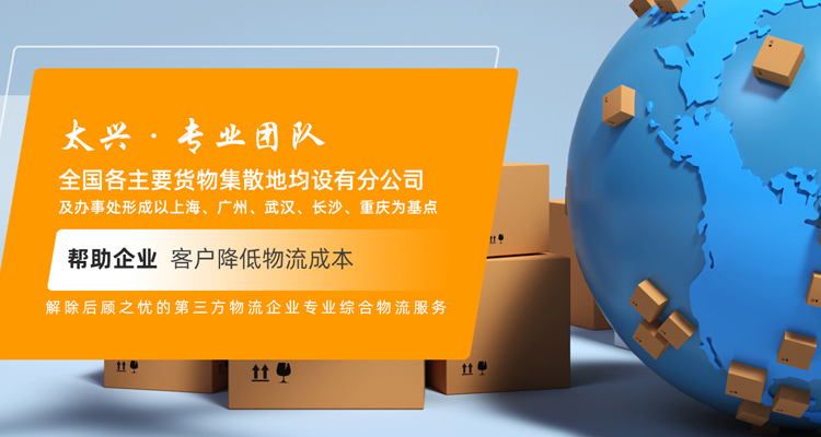 上海太兴物流有限公司是经上海市工商局注册、陆上运输管理所批准的一家专业的集多式联运、航空代理、报关仓储、包装、简单流通加工、信息处理为一体的第三方物流服务商。其前身以提供公路运输服务为主的专业公路运输企业,经过多年的发展服务范围已函盖公路、铁路、水路、长途运输、短途派送、区域分拨中心和仓库的管理。 订单信息系统的管理、进出口货运代理及提供第三方物流解决方案。